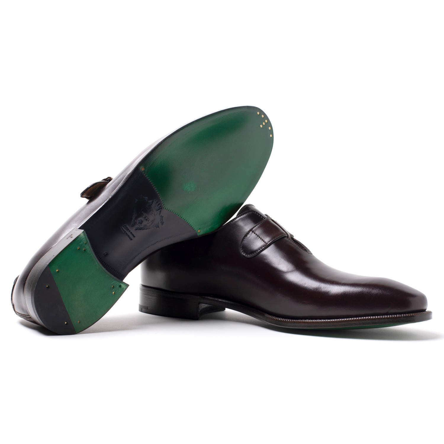 Mono fibbia in vera pelle Shell Cordovan (Horween). L’elegante modello presenta un cinturino arricchito da una fibbia argentata. Omaggio alla maestria artigiana della Maison. La suola in cuoio è colorata a mano mentre la fodera è in pelle naturale.