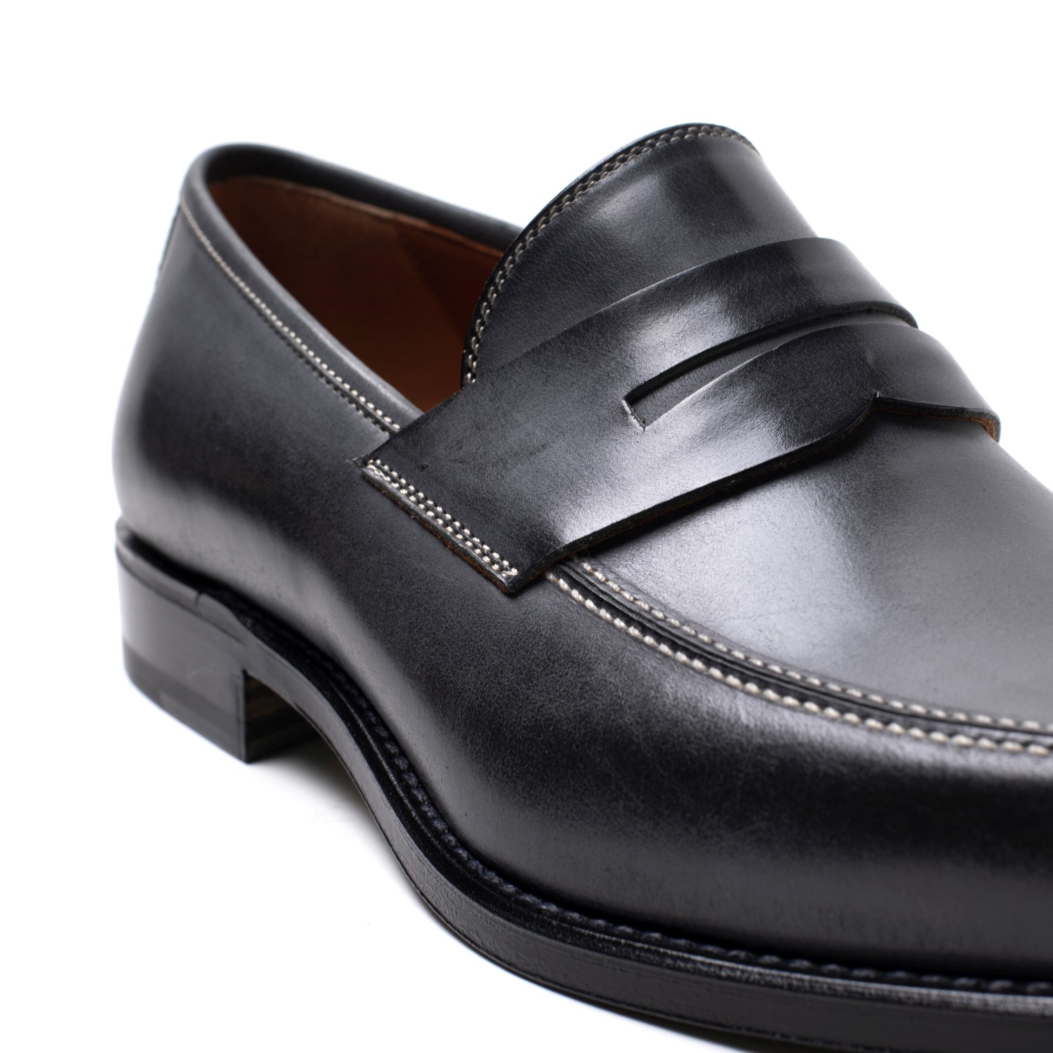 Mocassini college con mascherina in pelle spazzolata che rivela sfumature di colore. La suola in cuoio garantisce un comfort assoluto, per una calzatura da indossare quotidianamente. Made in Italy.