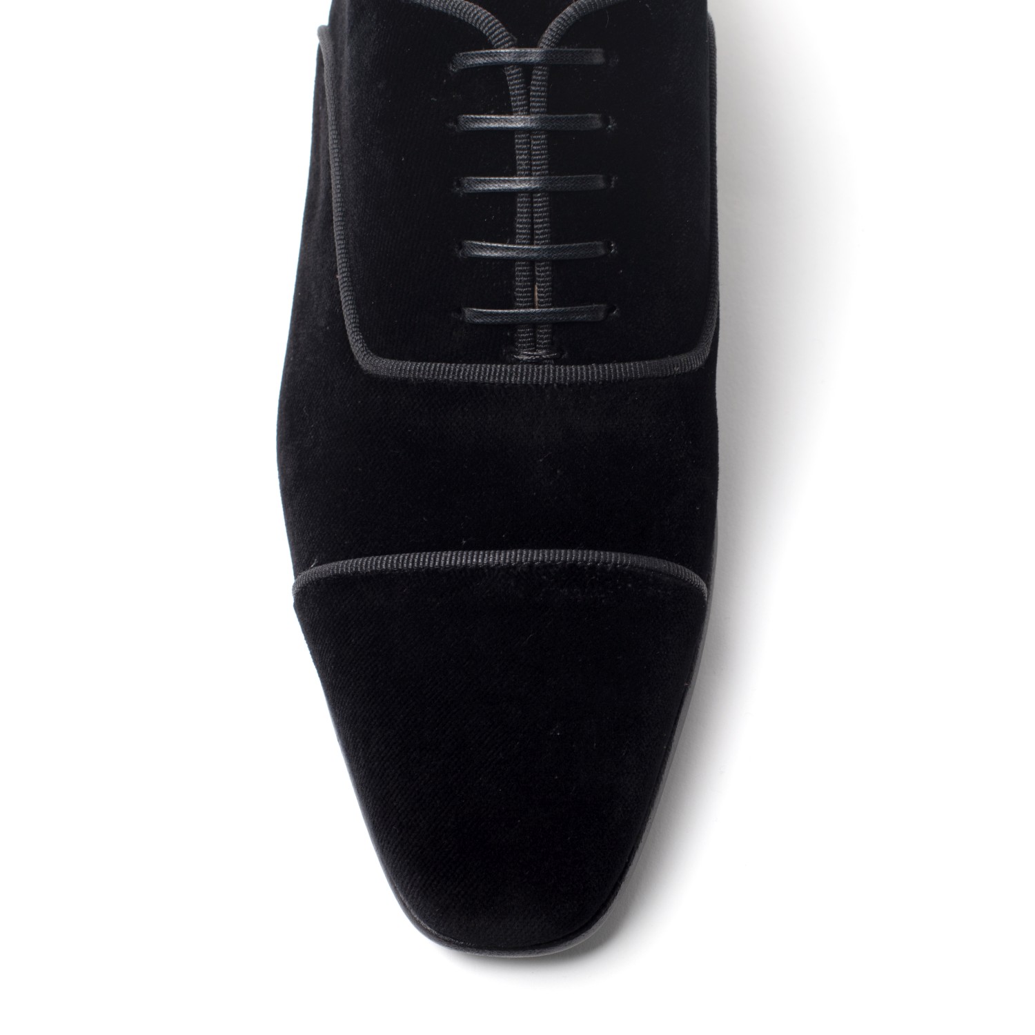 Stringate da sera senza tempo. Realizzati in pregiato velluto foderato in nappa di vitello. Un elegante modello pensato per le occasioni importanti. La oxford dalla forma elegante e allungata è dotata di una suola in cuoio colorata a mano. Made in Italy.