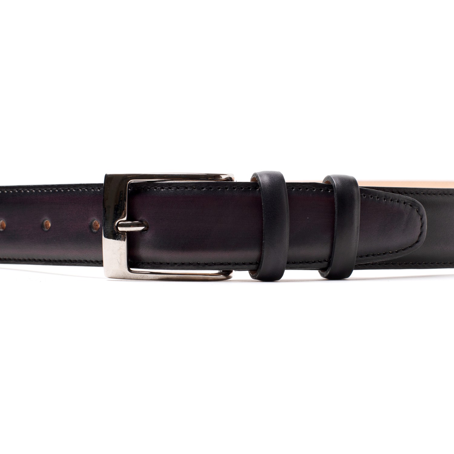 Cintura RIO mm. 35 in pelle di vitello colorata e sfumata a mano dagli artigiani della Maison, dotata di fibbia in metallo rettangolare. Grazie al pregiato materiale e al design elegante, questa cintura aggiunge un tocco di raffinatezza e può essere abbinata con i modelli di scarpe. Made in Italy.